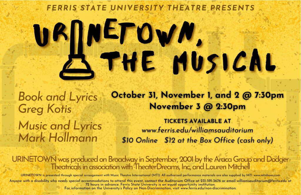 “Urinetown” will be opening on Halloween and continuing through the weekend. Anyone can follow up on any updates on the current or upcoming productions on their Instagram: @ferrisstateuniversitytheatre.