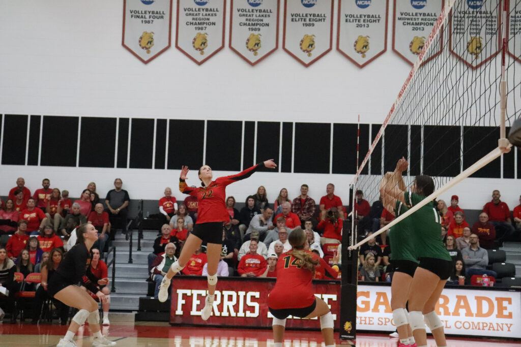 Ferris dominantly took down the Pride on Friday, winning the first set 25-13, the second set 25-14 and finally finishing off the Pride in a closer third set by a score of 25-21. With the victory over Purdue Northwest, the Bulldogs secured the GLIAC championship for the 15th time in school history and their first since 2022.