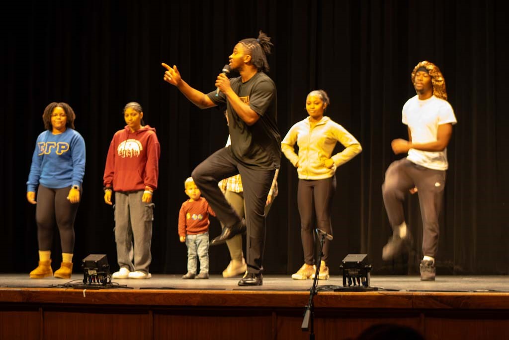 In one part of the act, the audience could even participate in stepping. Audience members volunteered to get up on the stage and were able to learn how to rhythmically perform the different stomps, steps, claps and spoken words that involve the dance.