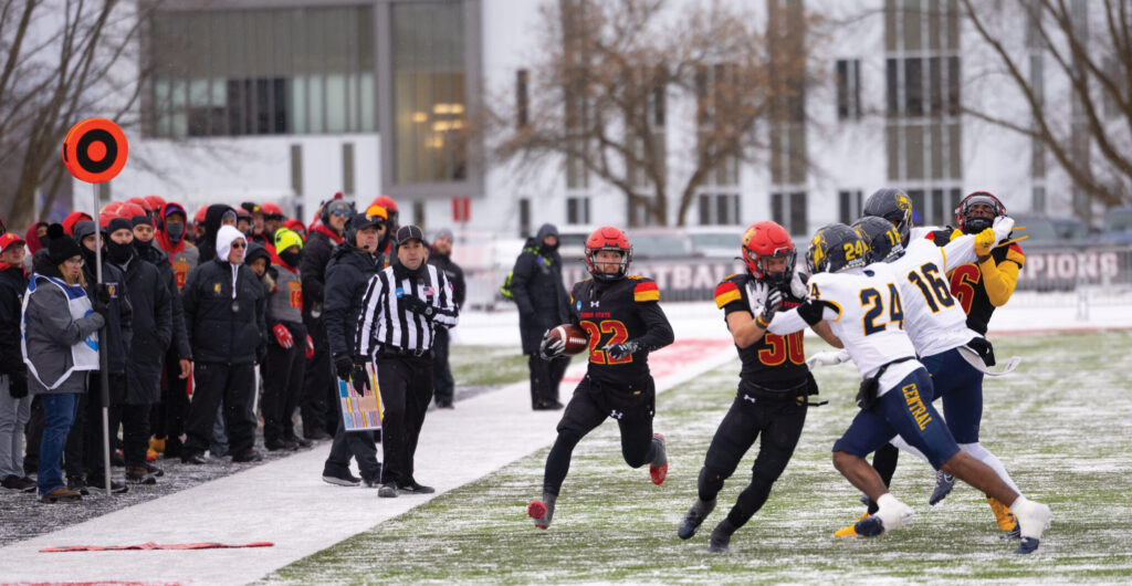 In the snowy conditions, Ferris outgained Central Oklahoma 688 yards to 422 including a staggering 485 yards on the ground.
