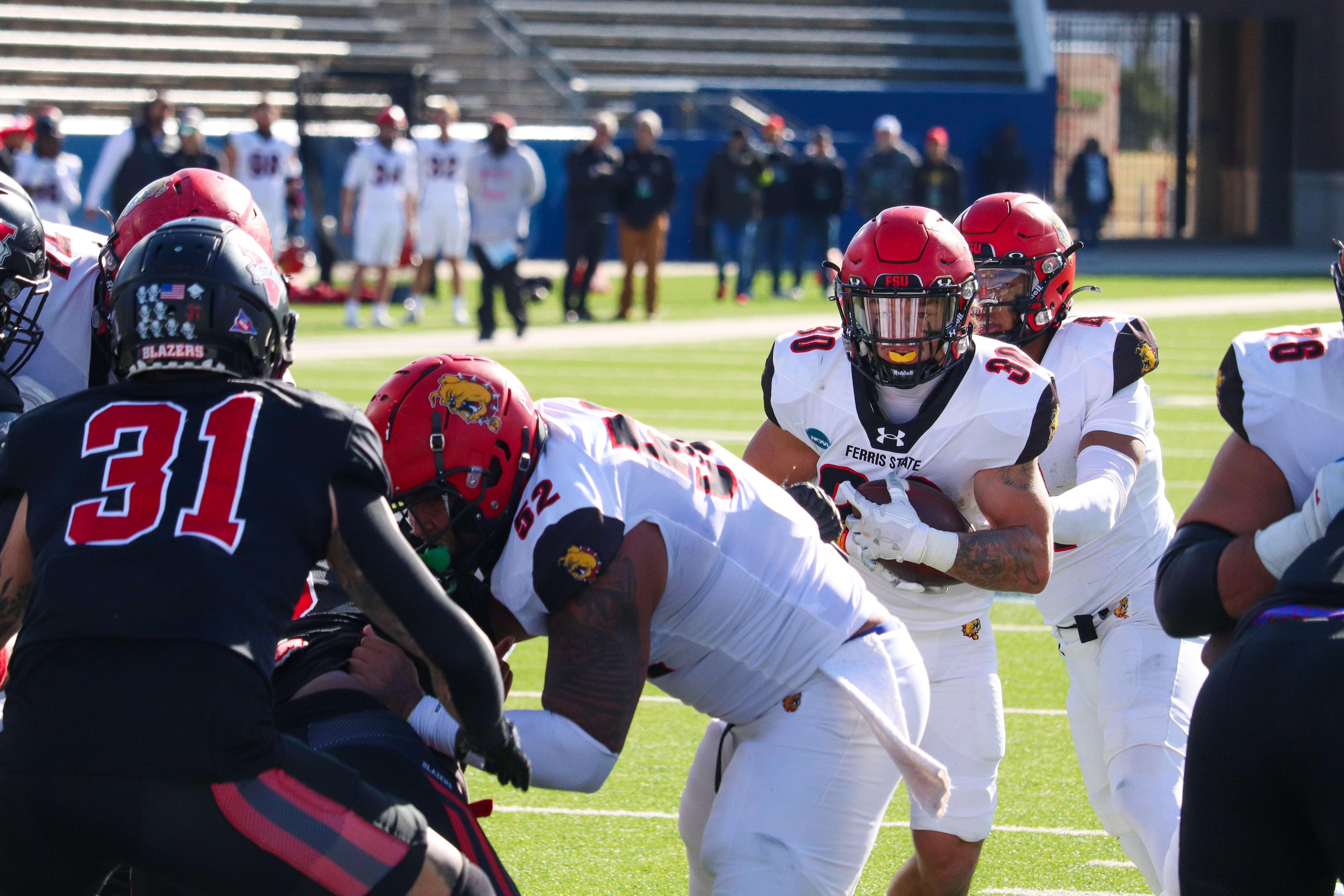 PHOTO GALLERY: Bulldog football wins 2024 championship Posted by Sam Mulder on December 24, 2024 in Feature Photos, Top Stories. Ferris State football won their third Division II national championship in three years with a blowout victory over Valdosta State. Check out the Torch’s gallery from the team’s title win in Texas. Photos by Sam Mulder | Torch Photographer [Show slideshow] ◄ 1 2 3 ... 9 ►