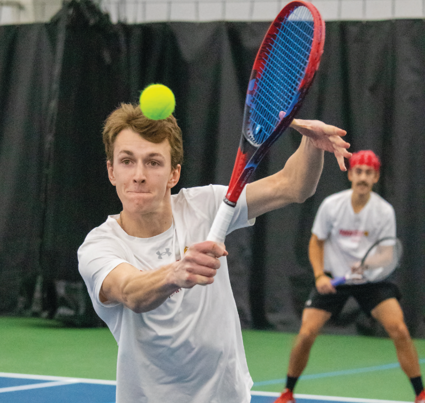 Junior Kacper Pasielak plays a double match with his partner. Archive photo by: Abe Kraus | Torch Photographer