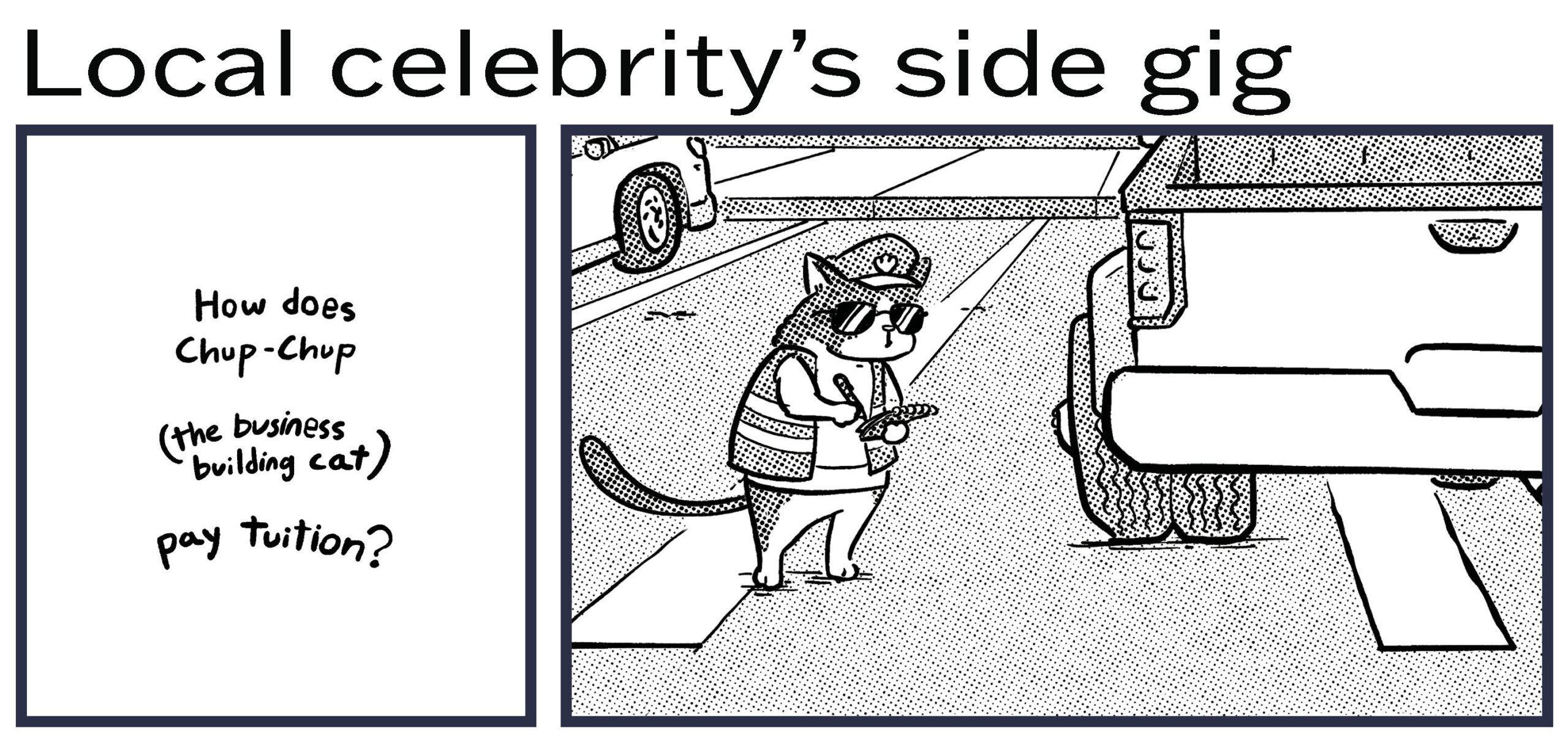 Local celebrity’s side gig Posted by Blake Flanery on September 24, 2025 in Cartoons, Opinions. Comic by: Blake Flanery | Cartoonist