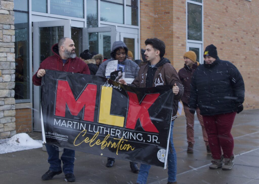 The annual MLK March at Ferris State started in 1987 and has continued for almost four decades to raise awareness about Civil Rights history. The march creates a shared experience that brings a sense of community to campus. Students gain opportunities such as leadership and activism. It is organized and celebrated as part of MLK Week.