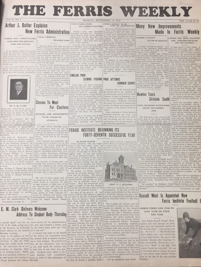 • The publication was known as the “Ferris Weekly” until Tuesday, March 29, 1938, when it debuted as the Torch. The “Ferris Torch” moniker was a reader submission that came from a contest to rename the newspaper. The two students who submitted the name “Ferris Torch” were awarded sterling silver rings bearing the Ferris Institute logo.