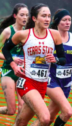 Ferris senior cross country runner Katie Etelamaki runs nearly 365 days a year, including summer training at home in the upper peninsula with a training partner she’s had since birth.