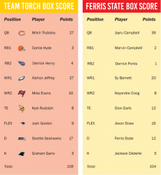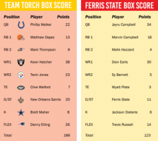 Team Torch is THRIVING this week, as they absolutely bulldozed the Bulldogs in fantasy scoring, taking a convincing 166-105 victory. Ferris had a tough matchup for their 2018 homecoming game […]
